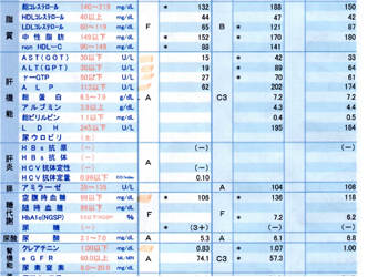 ※60代男性、3か月毎の血液検査結果。左が最新。(抜粋)